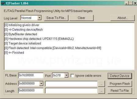 Отладочная программа для восстановления через JTAG - EJFlasher, которая сделает все необходимое по перепрошивке ресиверов OpenBox. Для правильной работы программы нужно выставить режим работы LPT-порта компьютера ECP и установить драйвер GiveIO.sys.