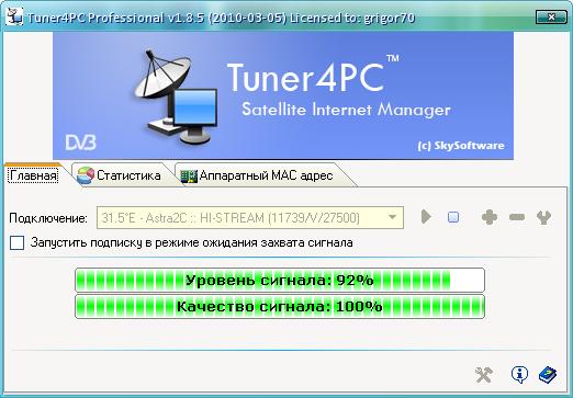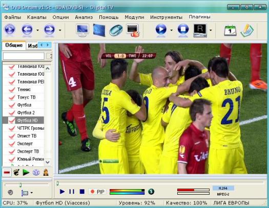 Затем протестировали с программой Dvb Dream для приема спутникового телевидения HDTV в стадарте DVB-S2. Мы были приятно удивлены качеством картинки и стабильной работой карты SPC1400HD.