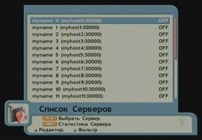 В появившемся разделе "Список серверов" выбираем любой сервер с помощью кнопок переключения каналов и жмем красную кнопку для внесения изменений.